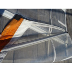 La voile présente des traces de frottement du nez de la planche dans le panneau central (photo 3) et un enfoncement (photo 4)