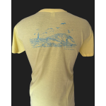T-shirt Homme jaune pâle, spot de carro en bleu ciel dans le dos.