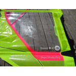 La matere des fenêtres de la Banzai Pro est un film Bi-Ply.Ce matériel est un énorme pas en avant par rapport au mono-film.Le Bi-Ply sont deux couches de film transparent laminé d’une durée de vie environ trois fois plus longue que celle du mono film.Il contient un filtre anti UV et est très résistant aux plis.Vous vous rendrez compte de sa résistance en cas de lourde chute dans la fenêtre, par rapport a un mono film classique.