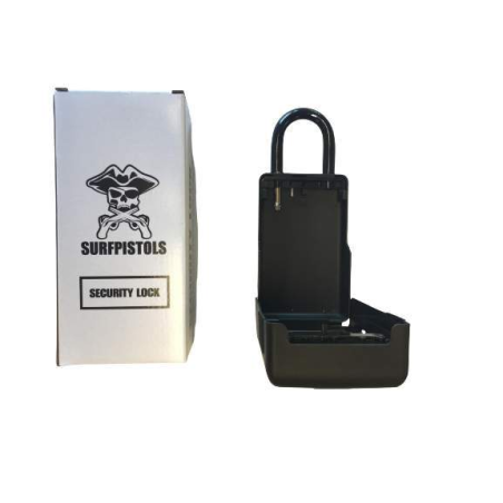 Avec votre boitier antivol Surfpistols et son code à 4 chiffres, vos clés seront en sécurité. Suffisamment large, elle peut accueillir vos clés, cartes ou billets. La anse est assez large pour le fixer à divers endroits tels que l’anneau de remorquage de votre véhicule, une barrière métallique, poignée de porte…