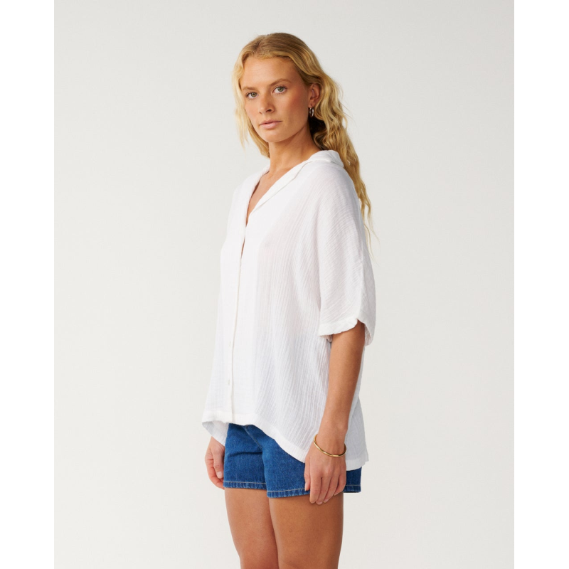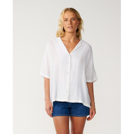 La chemise Premium Surf manches courtes mise sur un style décontracté avec col ouvert et fentes latérales pour une allure légère et chic.