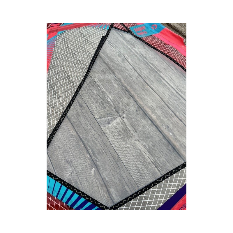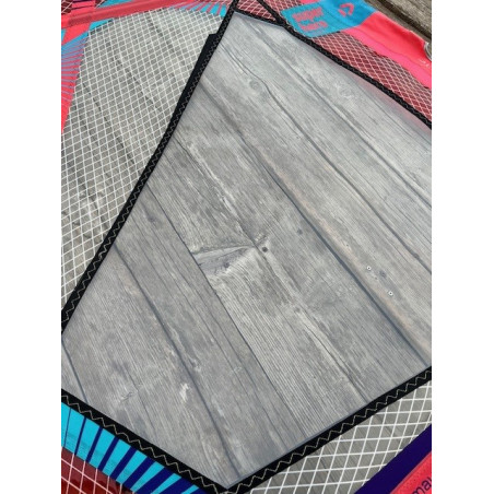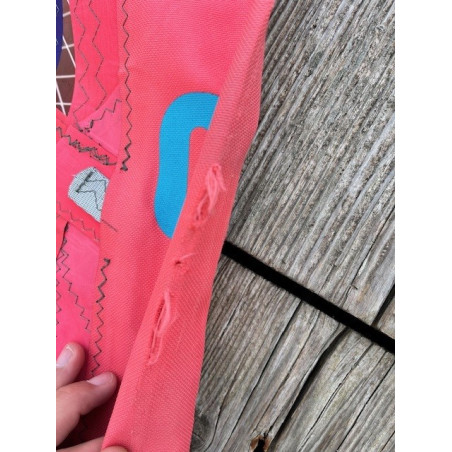 La zone autour de la fenêtre du wishbone est particulièrement sollicitée, car le guindant fait toujours des plis quand on enfile ou retire le mât.
