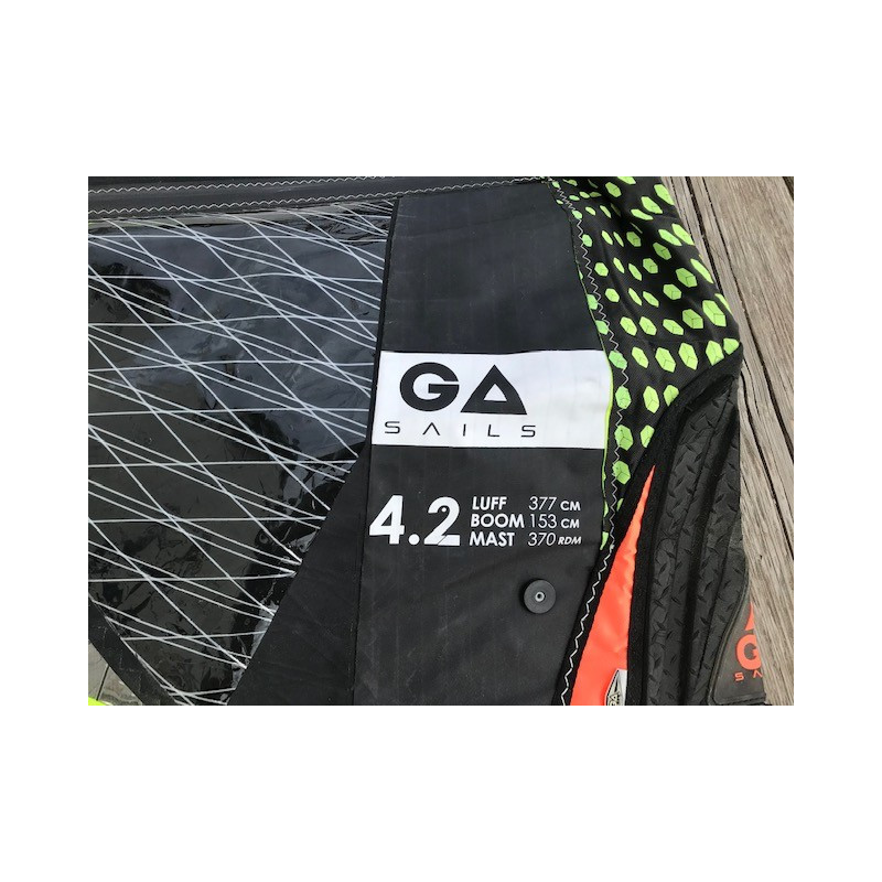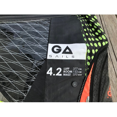 Voile d’occasion Ga Sails IQ 4.2m² Millésime : 2018Prix du neuf : 739€ ETAT DE LA VOILE Bon état malgré accrocs dans le fourreau (photo 7) panneau refait (photo 3, 4) et des plis dans le panneau central (photo 5, 9) DONNÉES TECHNIQUE