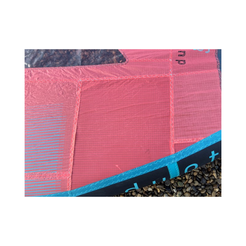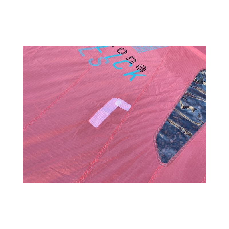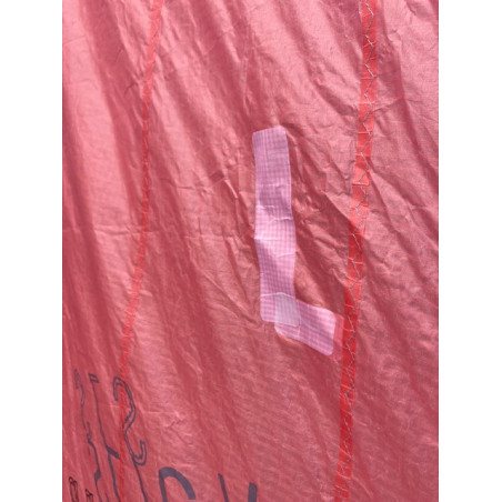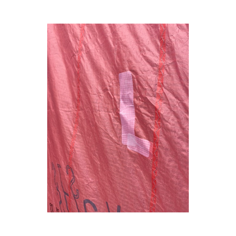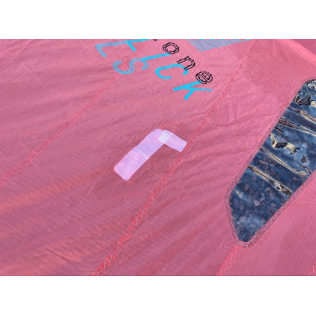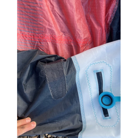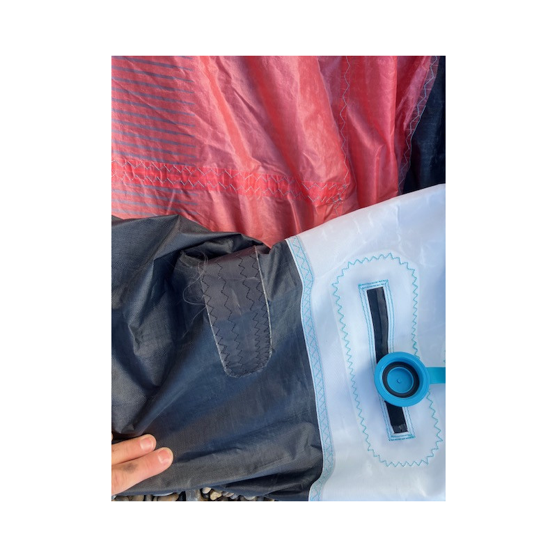 2 réparations pro sur le spi (photo 5, 6), 2 trous stickés sur le spi (photo 7 à 10), une réparation pro sur le bord d'attaque (photo 10)