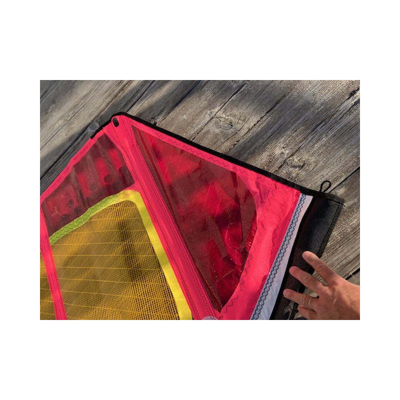 Carbon Stretch Control, anneau d’écoute en titane, fourreau Rip Stop et protection de point d’amure moulée complètent cet ensemble haut de gamme. Les finitions du fourreau, ainsi que les renforts au point d’amure et à la bordure, sont désormais repliés afin d’améliorer la durabilité et d’éviter l’effilochage des bords. Un large renfort marqueur sur la chute supérieure empêche la dégradation de la chute dans des conditions de vent fort, comme à Pozo.