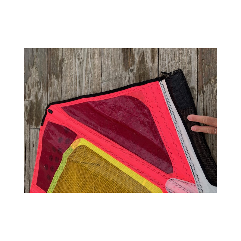 • Un large renfort de chute supérieur protège la voile dans les conditions extrêmes telles que Pozo, the Gorge , Omaezaki ou Carro.