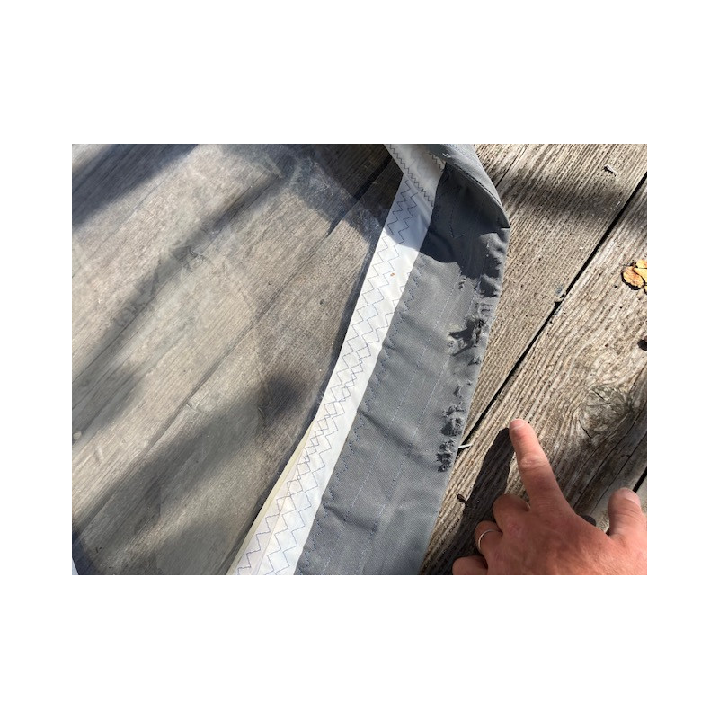 Etat moyen. Fourreau déchiré (photo 5, 6), un trou pres de l'ecoute (photo 3)