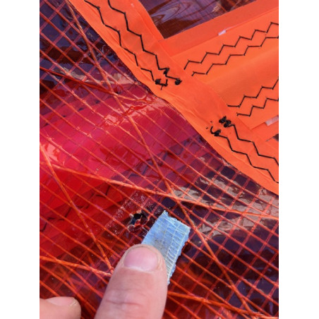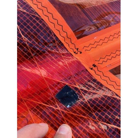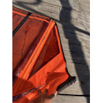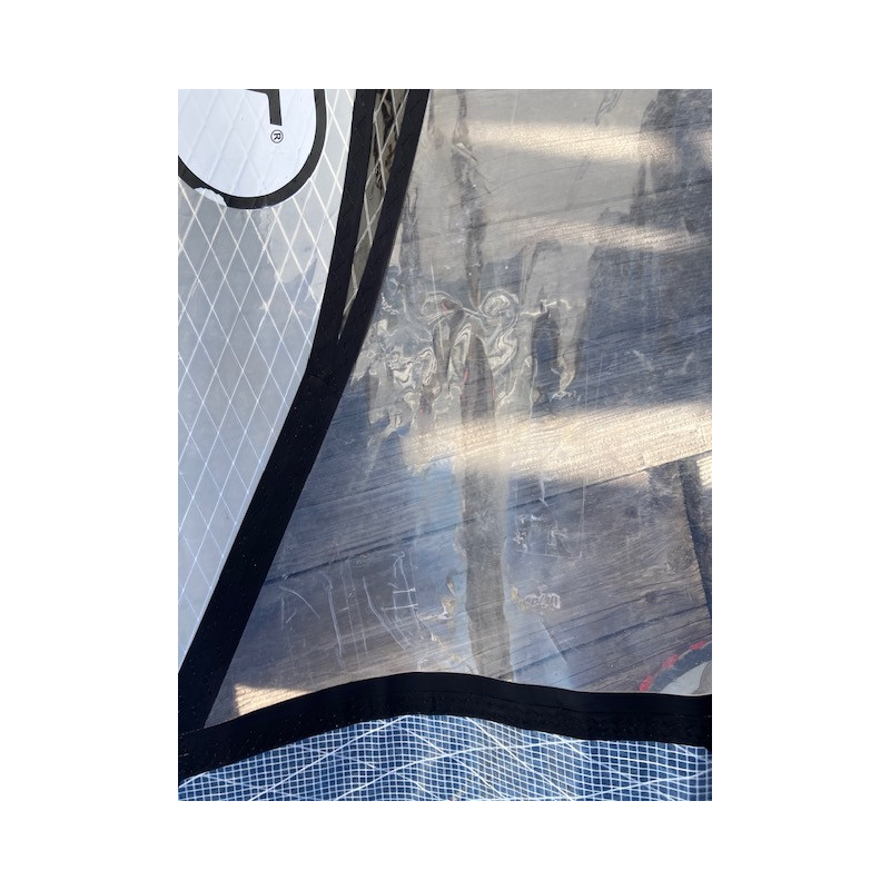 Bon état, un accroc dans le double fourreau (photo 6, 7), des traces dans le panneau central (photo 8, 9), plis stickés près de l'écoute (photo 10)