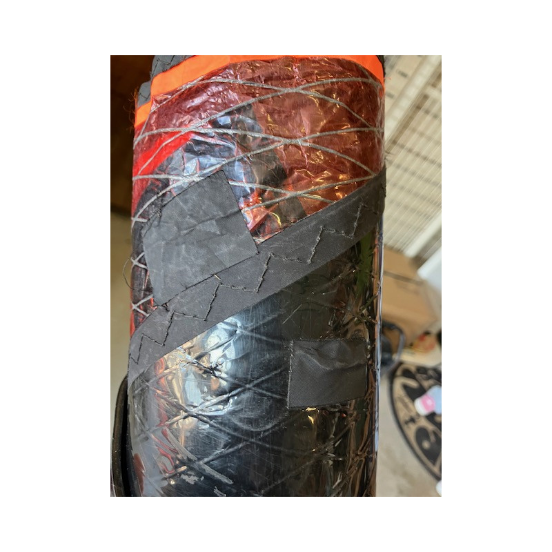 Fourreau composé d’un panneau de mât et de côtés en X-Ply triaxial 2 mil (3 couches), tous directement mis en tension (les 3 couches passent sous les sangles de la poulie d’amure).