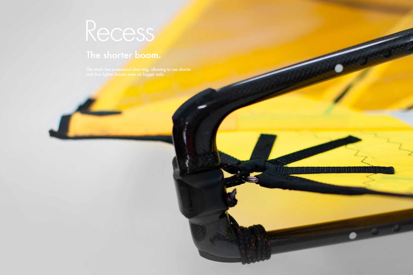 La Mark est équipée d’un point d’écoute encastré (recessed clew ring), permettant l’utilisation de wishbones plus courts et donc plus légers, même sur les grandes surfaces.