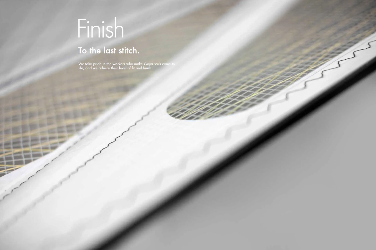 Nous sommes fiers du savoir-faire des artisans qui donnent vie aux voiles Goya, et nous admirons leur niveau d’assemblage et de finition irréprochable.