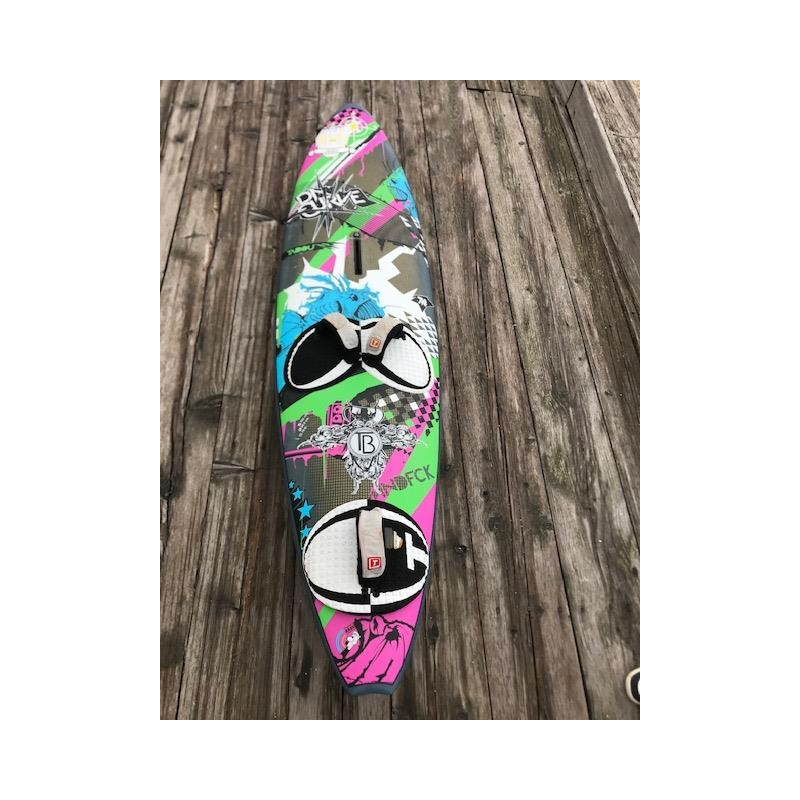 C’est en fait une planche qui demande du vent pour être à l’aise en side on. En surf, en revanche, s’il faut soit de bonnes vagues soit du bon vent pour qu’elle s’exprime pleinement, la Da Curve reste tout de même assez hallucinante. On en fait simplement ce que l’on veut, à condition d’avoir un bon niveau technique ou un gabarit léger. Eh oui, sans être inaccessible, elle ne pardonne pas toutes les erreurs! Au niveau des courbes, le contrôle est une constante quelle que soit la vitesse, ce qui permet de longs bottoms super engagés, mais c’est surtout sa capacité à enrouler les courbes qui est impressionnante. On ne ressent pour ainsi dire aucune gêne pour tourner jusqu’à remonter à la verticale sous la lèvre, tout en carving.