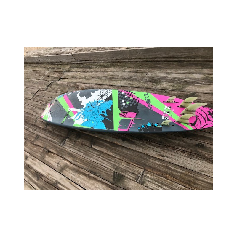 Au niveau shape, elle présente un scoop très courbe, des rails fins et est plutôt étroite pour son volume.SUR L’EAULa Tabou Da Curve Quadster est sans conteste la planche au caractère le plus surfeur et radical de ce test comparatif. Avec un volume assez faible sur l’arrière et un scoop courbe, son départ au planing reste en retrait, même si l’on observe un gain à ce niveau en tri fin. De même, à bas régime, avec moins d’appuis sur l’arrière, il est plus difficile de trouver l’accélération instantanée qui permet parfois de réaliser un saut inespéré ou de mieux négocier les mousses.