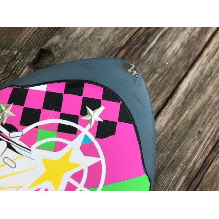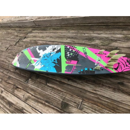 En haut de vague, les ailerons latéraux permettent d’aider les rails à accrocher fort s’ils sont immergés, mais avec la planche plus à plat, elle slashe bien aussi dans le style skate. La configuration tri fin diminue un peu l’accroche en carving et apporte un plus en termes de pivot dans les petites vagues.