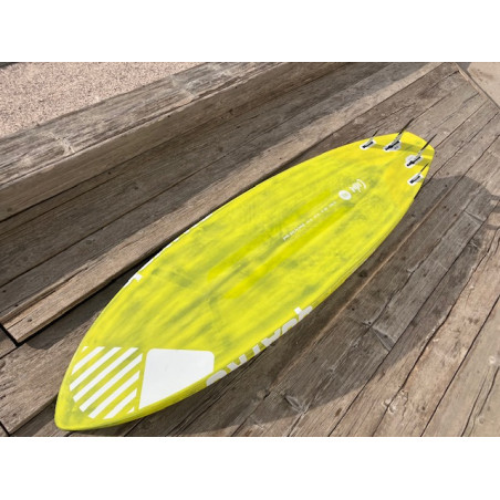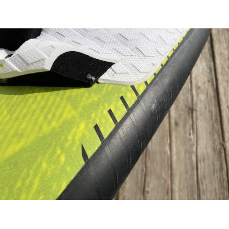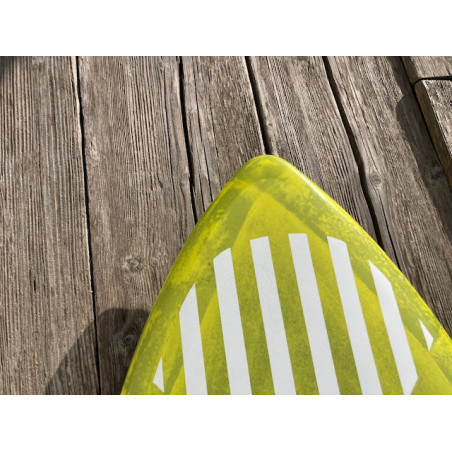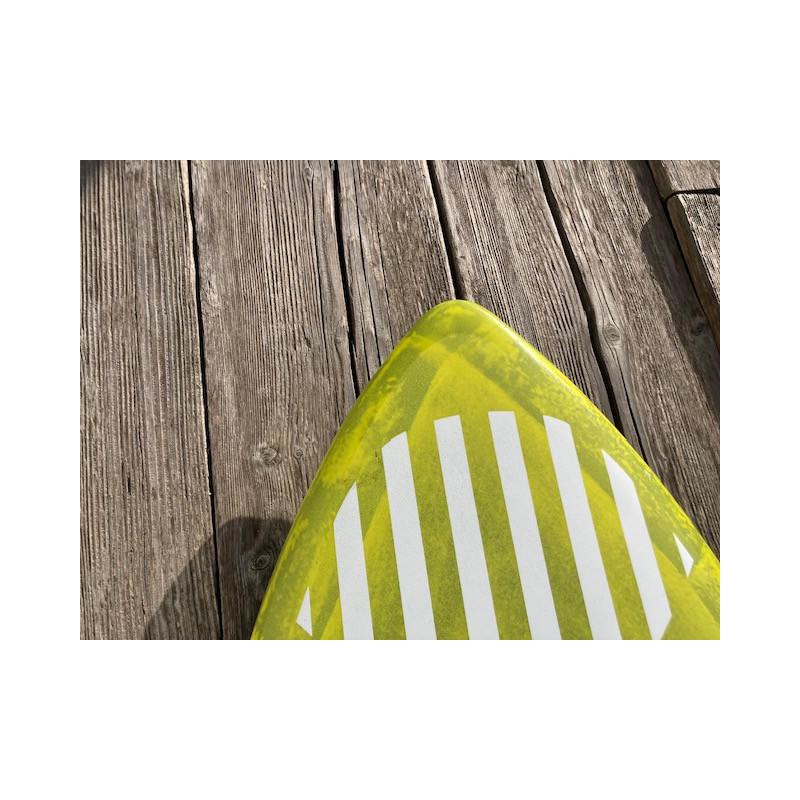 La stratification interne comprend des bandes de rails en S-Glass, tandis que la stratification externe bénéficie de renforts spécifiques ultra-résistants au niveau des ailerons, adaptés aux sauts et aux contraintes élevées, avec un fond entièrement en S-Glass.
