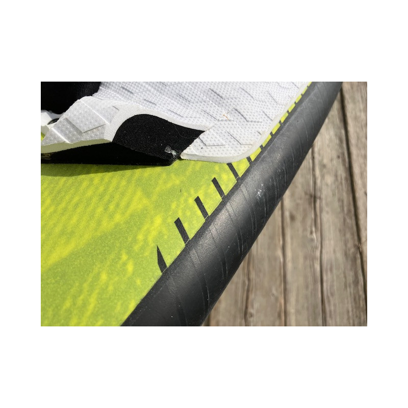 La stratification interne du pont intègre la UCM™ Unidirectional Carbon Monocoque, reliant le pied de mât à la zone de stance pour une transmission directe des appuis. La BCM™ Biaxial Carbon Monocoque recouvre l’intégralité de la zone des footstraps afin d’offrir une résistance maximale aux impacts sous les talons, complétée par des bandes de rails en S-Glass.