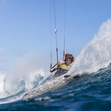 Construite pour durer et offrir des performances optimales, cette planche est fabriquée en Innegra, un matériau haute performance qui amortit les vibrations et résiste aux impacts. Cela garantit une navigation fluide et stable, te permettant de te concentrer sur tes performances sans te soucier de l’usure.