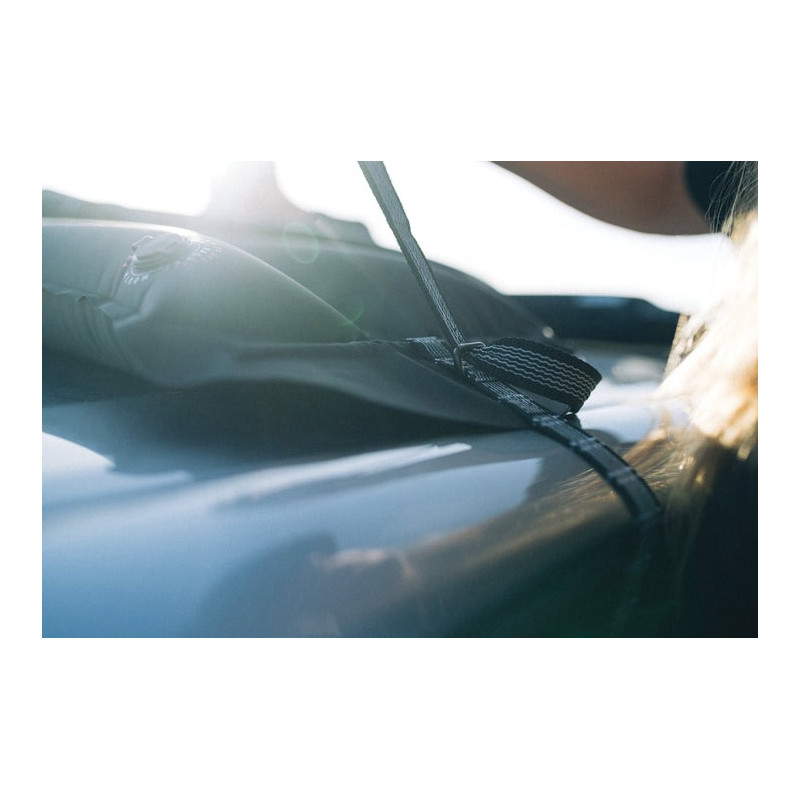 Son design intelligent intègre plusieurs boucles de fixation ainsi que deux sangles en nylon durable de 225 cm, équipées de boucles autobloquantes anti-rayures. Fixer tes planches et prendre la route devient ainsi un jeu d’enfant.