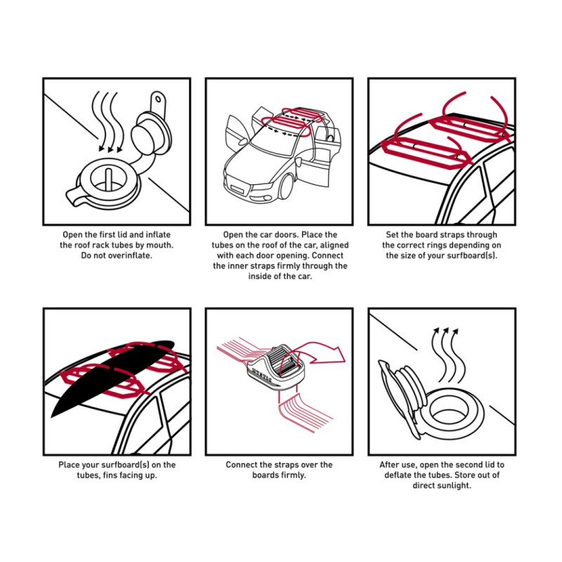 Roof rack gonflable pratique et rapide à installer, se gonflant simplement à la bouche.