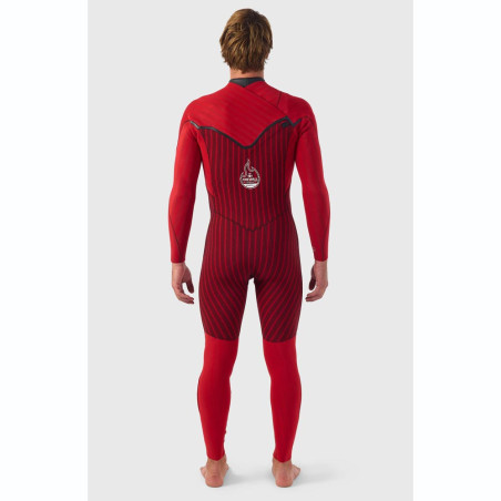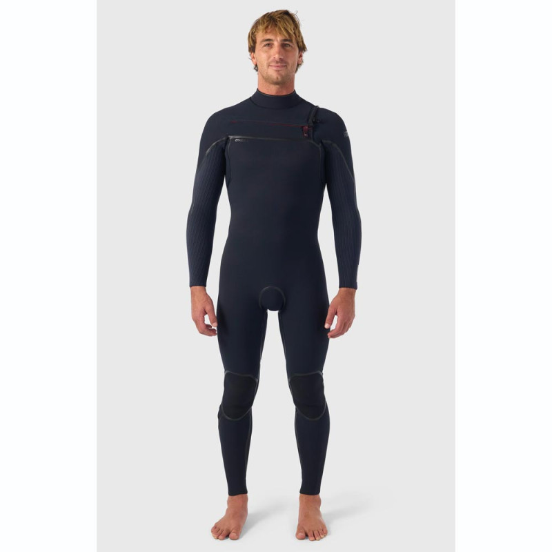 Combinaison néoprène 5/4+ Chest Zip ultra chaude et légère. TB4 Firewall au graphène, TechnoButter 4/4X hyper souple, extérieur Fluid Seam Weld + intérieur GBS, barrière anti-flush 360°, poignets/chevilles Super Seal pour l’eau froide.