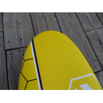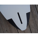 La ligne de scoop droite sur la section médiane de la planche est développée pour la vitesse pure, tandis que le nez plus haut et les cut out sur le tail permettent aux planches de se soulever suffisamment pour gérer les clapots et les empannages à pleine vitesse et en contrôle.