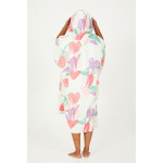 Tissus épongeLarge capucheLarges manches pour enfilage facileMatière absorbantePoche poitrineCordon pour les clefsOuvertures latérales pour faciliter le changementImprimés originauxMatière :Polyester (50%)Coton (50%)