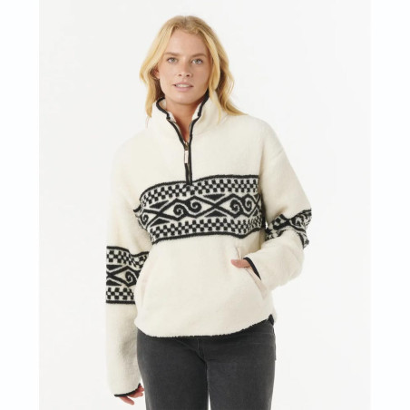 La Polaire Oceanic Cosmic Kiss est très confortable grâce à sa polaire douce et son col à fermeture Éclair 1/4. Fini avec un imprimé sur la poitrine et un badge en silicone, il est fait pour le farniente décontracté sur la côte.