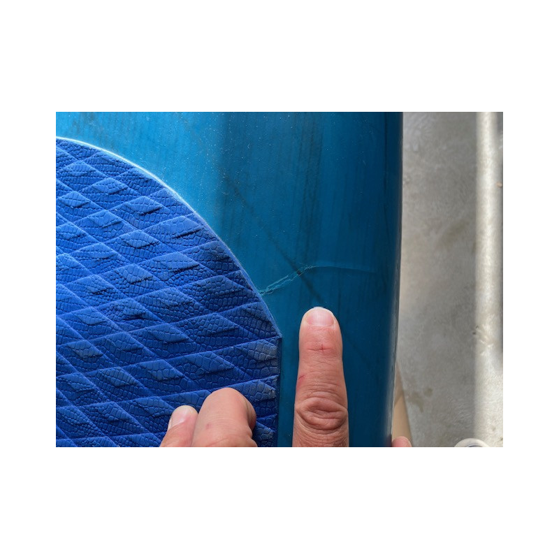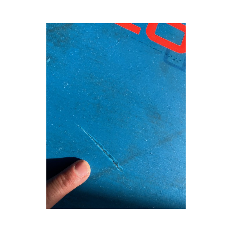 Présences de rayures sur le pont (photo 4 ) le nez (photo 5). Eclats de peinture sur le pont du a un enfoncement (photo 3).Réparation sur la carene (photo 2)