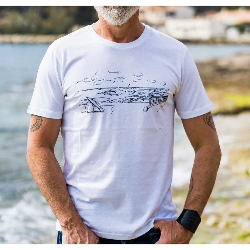 Tee shirt blanc avec le spot du Menhir à Sausset les pins !