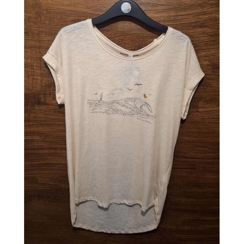 Kota Blue T-shirt Beige Femme Carro Noir Mouettes Or L