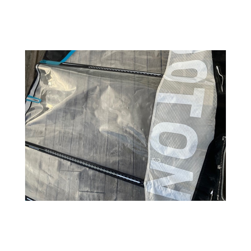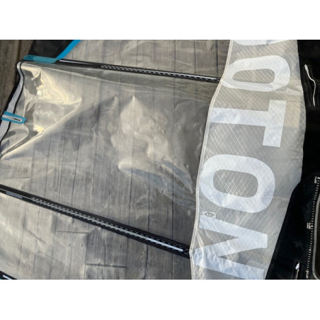 Pour que la traction de la voile soit en équilibre de poussée avec la faible traînée de l'hydrofoil, nous avons réduit la largeur de la tête de voile et ajouté de la hauteur pour conserver la surface totale, le résultat donne une voile plus élancée. Le twist réduit apporte plus de stabilité en tête de voile afin de s’équilibrer avec le vol sur l'hydrofoil. Sur l'eau, cela se traduit par une amélioration de la stabilité et un excellent contrôle de l’ensemble, même à haute vitesse.